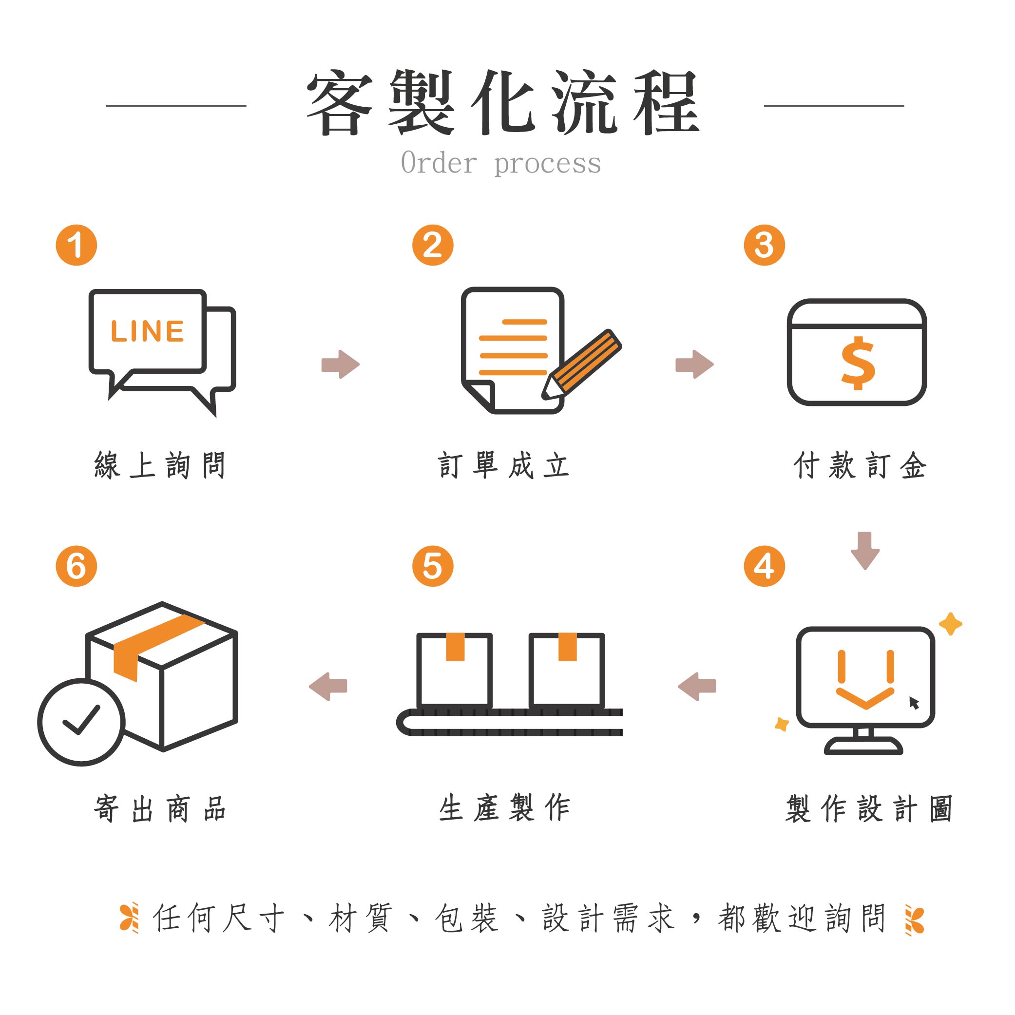 ‧若有客製化需求,在麻煩提供製作物的相關圖片,協助我們更精準達成您的需求
